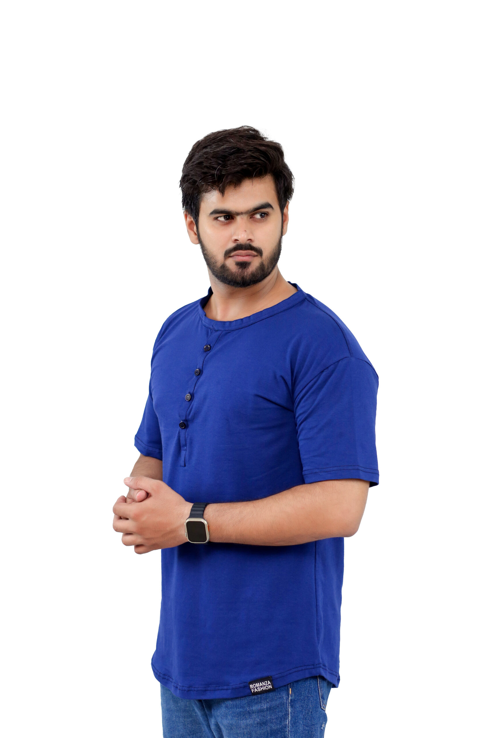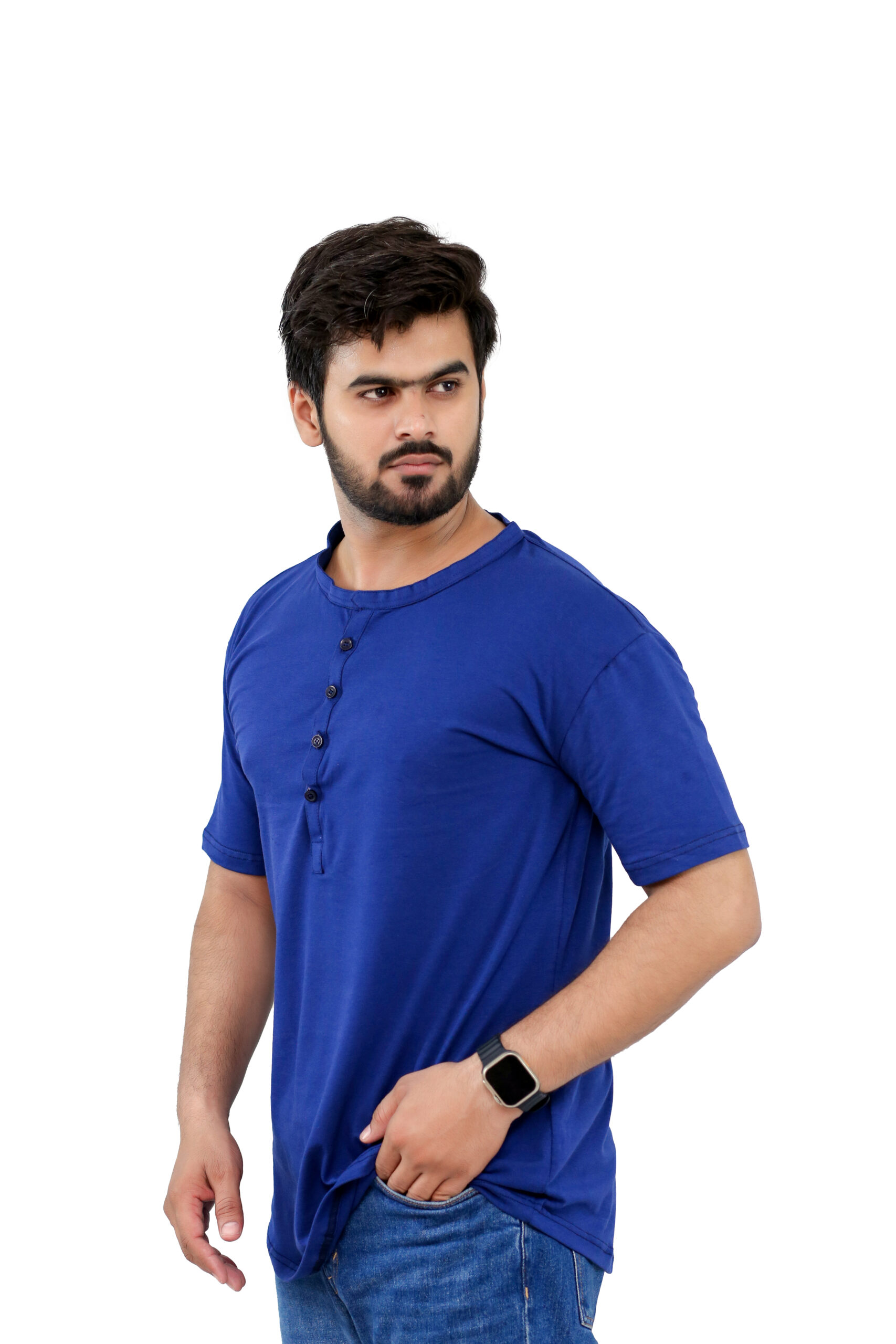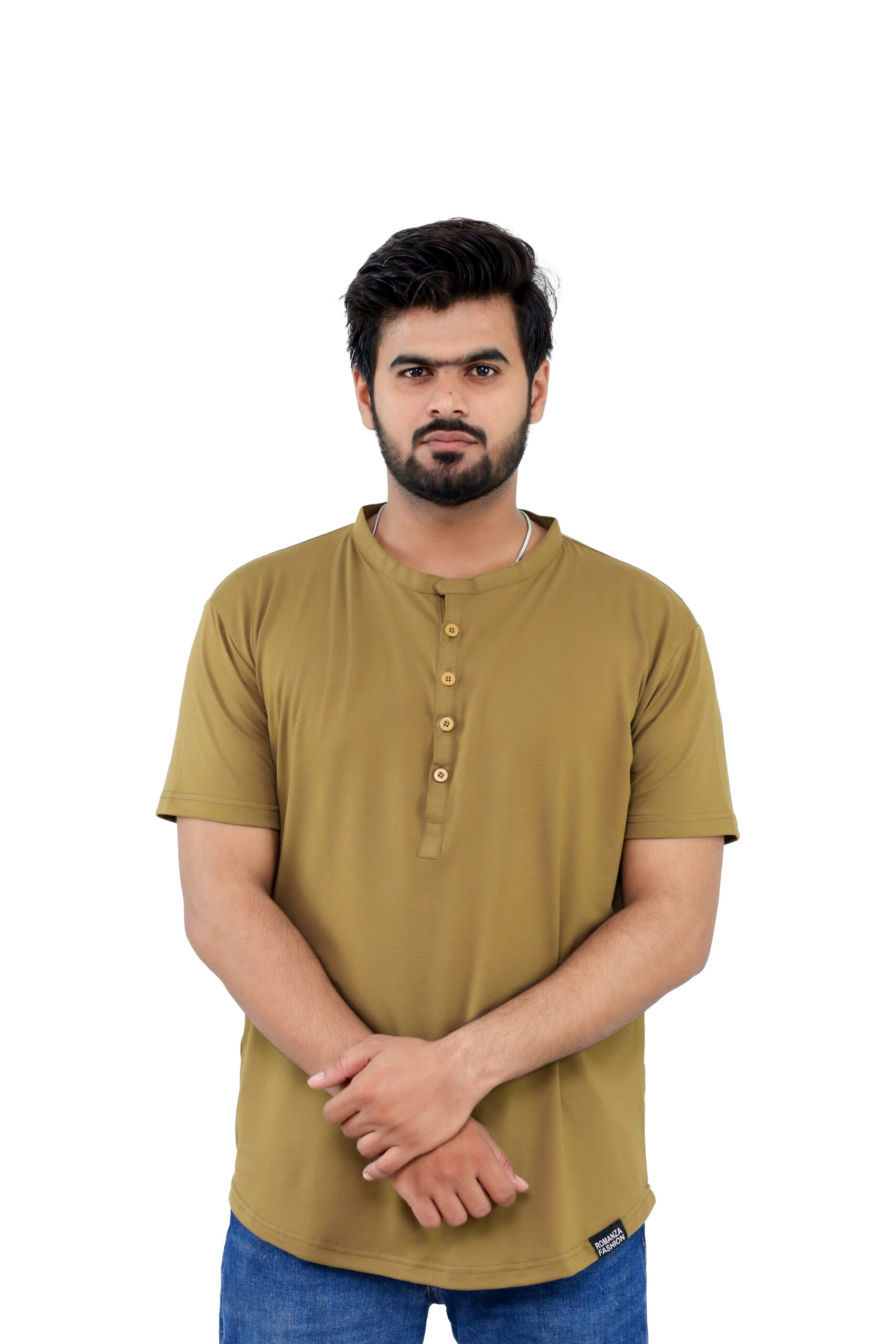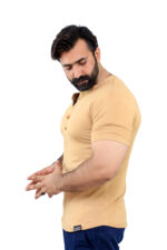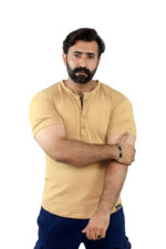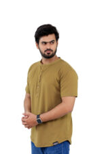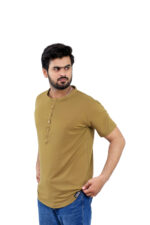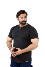Elevate your casual wardrobe with this thoughtfully designed T-shirt crafted from a premium blend of 95% cotton and 5% spandex, offering a perfect balance of natural comfort, breathability, and flexible movement. Designed for both style and practicality, this T-shirt features a sleek front button strip and a minimalist band collar (ban collar) for a modern, clean look.