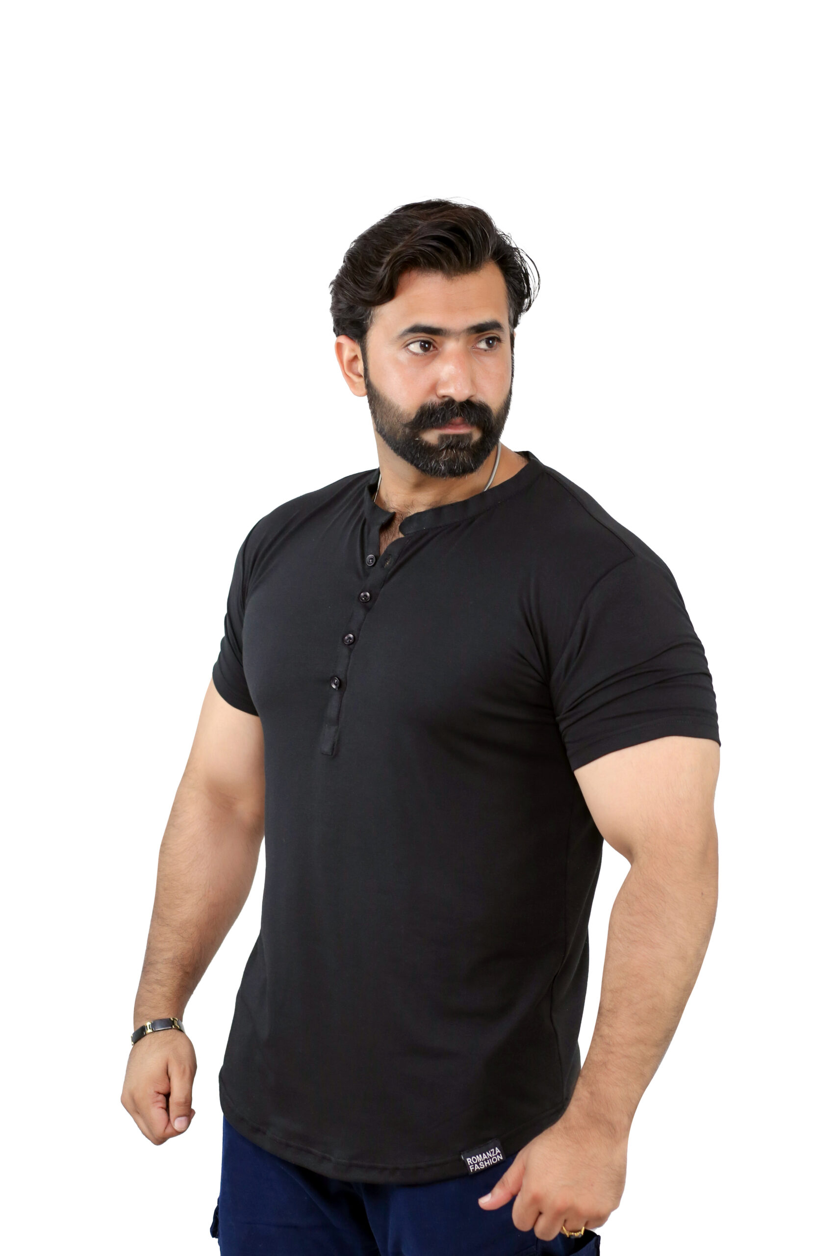 Elevate your casual wardrobe with this thoughtfully designed T-shirt crafted from a premium blend of 95% cotton and 5% spandex, offering a perfect balance of natural comfort, breathability, and flexible movement. Designed for both style and practicality, this T-shirt features a sleek front button strip and a minimalist band collar (ban collar) for a modern, clean look.
