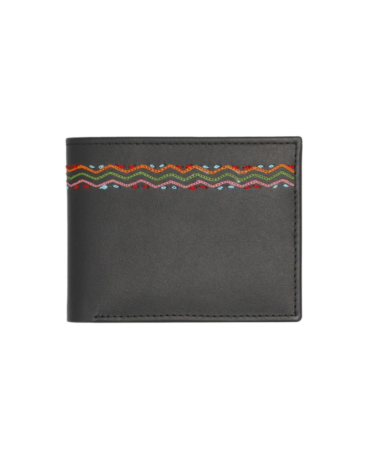 The Balochi thread work on this piece adds a traditional touch and is made from Cow Nappa leather. Its slim and compact design should fit well in your pocket.